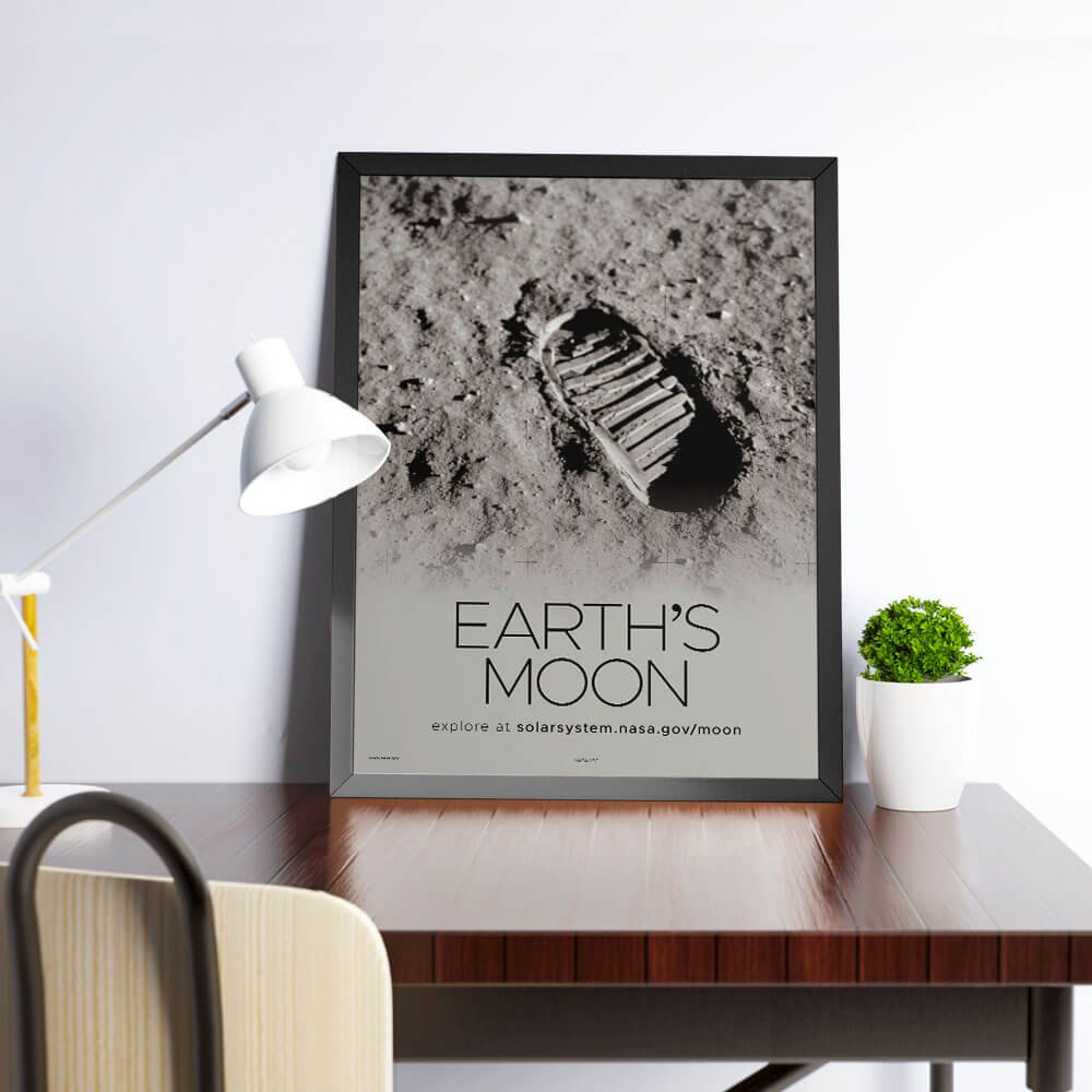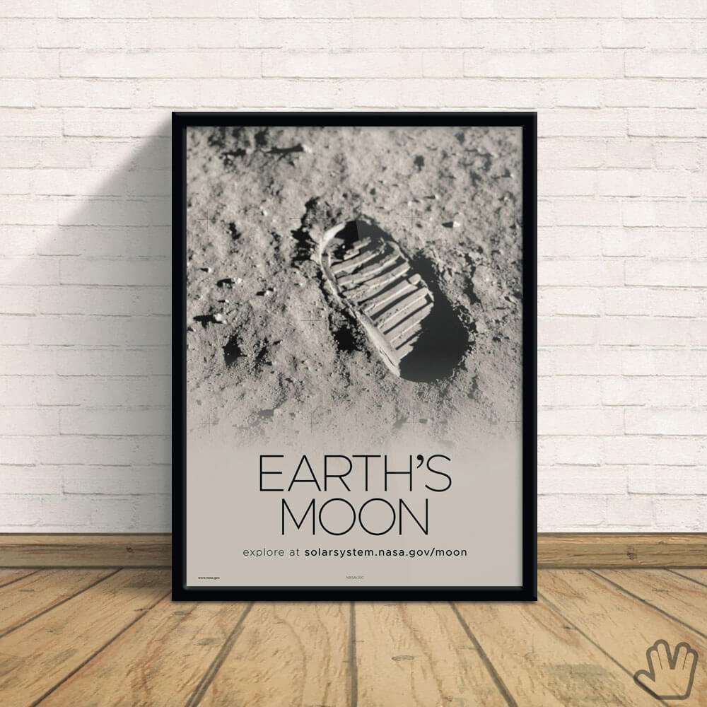 Quadro Pegadas Na Lua, quadros decorativos com moldura levam vida para a decoração. Uma das tendências mais fortes na decoração Geek.
